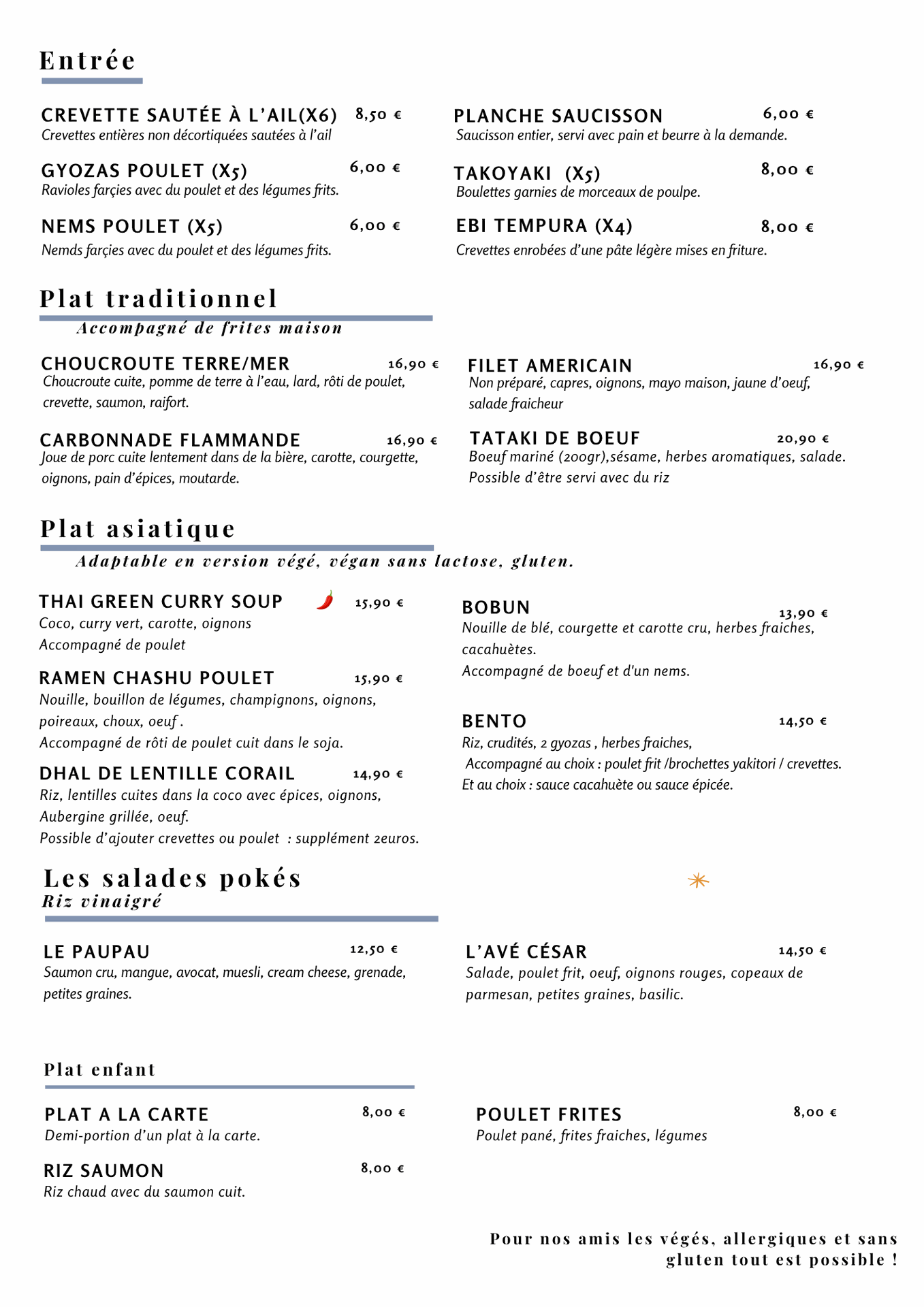 - Crevettes sautées à l'ail 8,00 € crevette sautées à l'ail